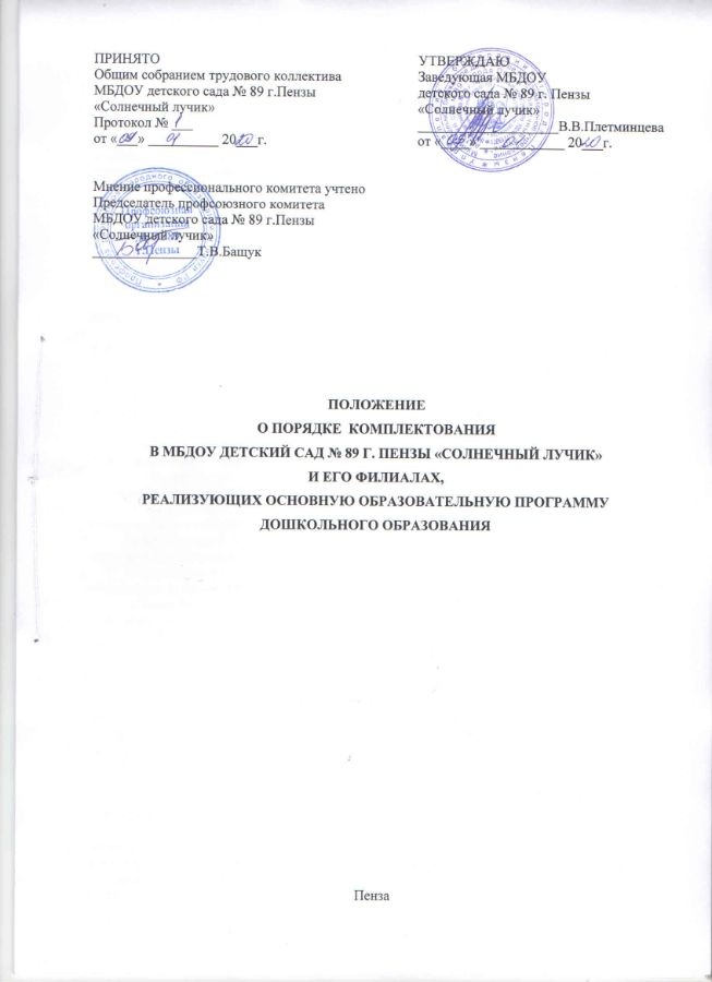 Положение о порядке приема в МБДОУ |